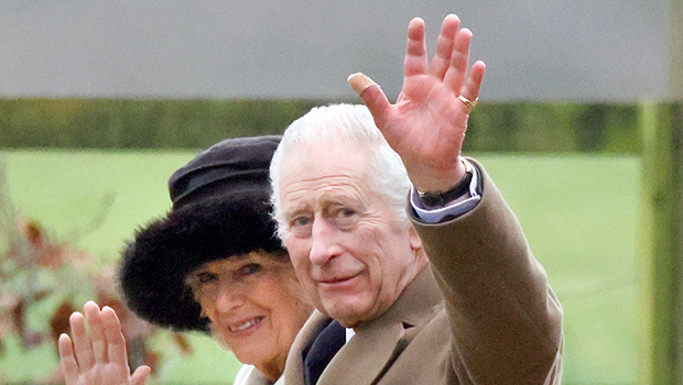 The monarch waved to onlookers as he walked beside his wife, Queen Camilla, during the outing.