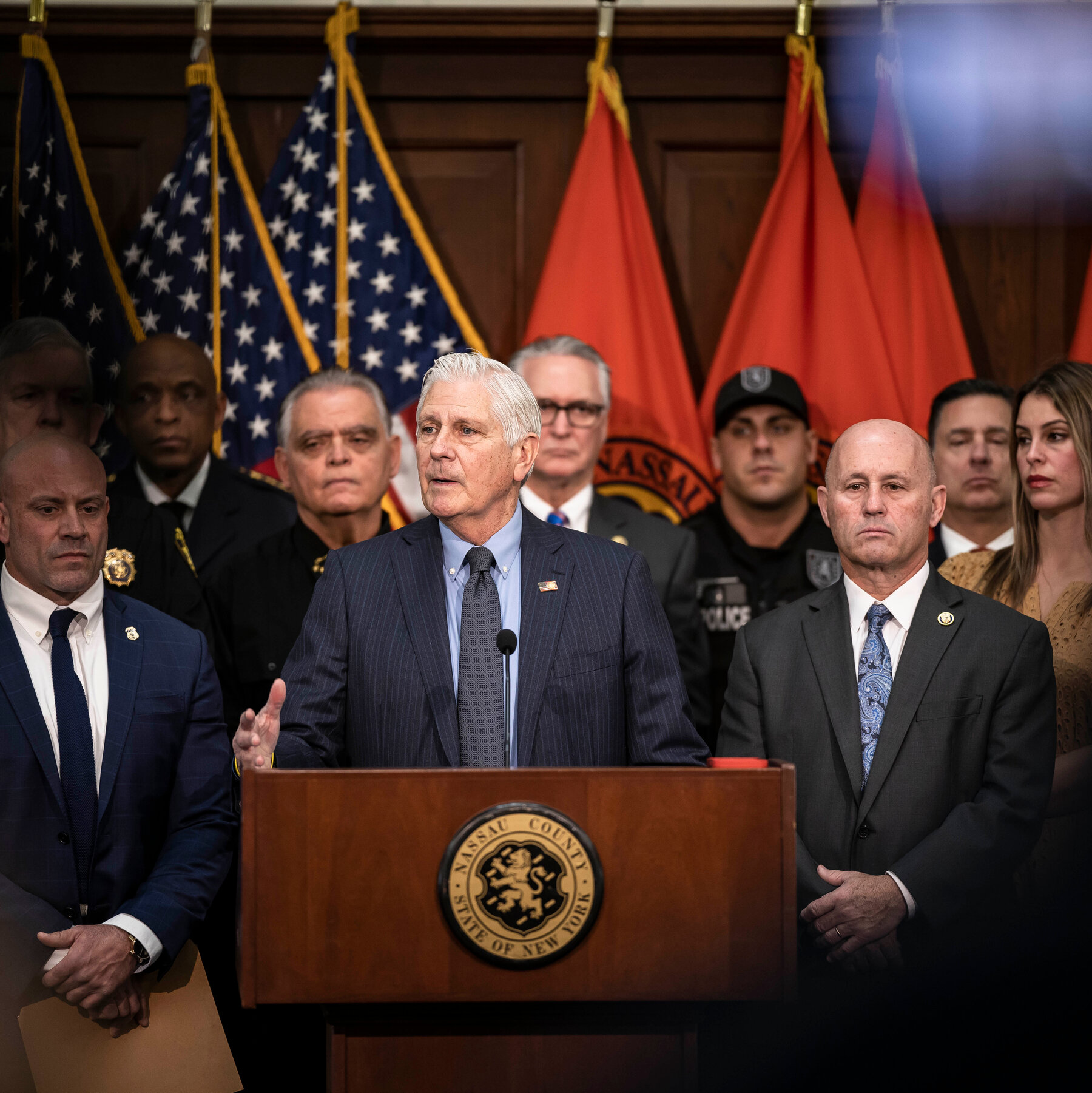 Nassau County, which recently barred residents from wearing masks in many circumstances, will allow police officers to wear them during immigration en...